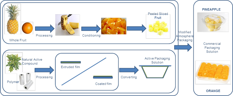 Dicho de otra manera más sencilla, la idea es liberar compuestos activos, específicos para cada tipo de fruta, a través del envase. Dichos agentes se incorporaran a la matriz polimérica del paquete o como un recubrimiento, liberándose y dosificándose en función del tipo de fruta.