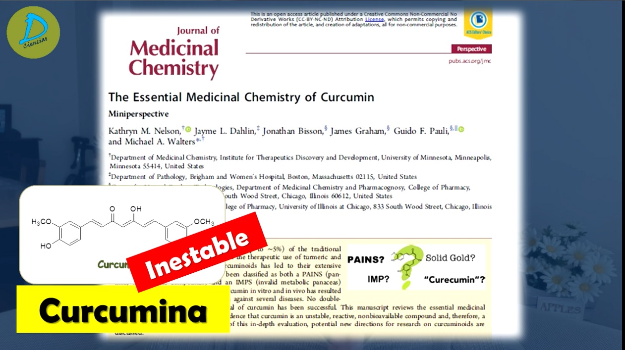 Según investigaciones recientes, publicadas en la revista de alto impacto Journal of Medicinal Chemistry, paradójicamente la curcumina no es estable químicamente, no es biodisponible, es decir, es una sustancia incapaz de absorberse completamente y llegar al lugar de acción, en otras palabras, es incapaz de llegar al lugar donde debe funcionar en nuestro cuerpo. Incluso se afirma que es una molécula reactiva.