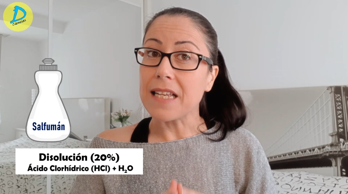 El salfumán, aguafuerte o ácido muriático es básicamente una disolución acuosa de ácido clorhídrico (disolución al 20% de ácido clorhídrico). El ácido clorhídrico es un gas que se disuelve en agua para poder utilizarlo como desinfectante en los hogares.