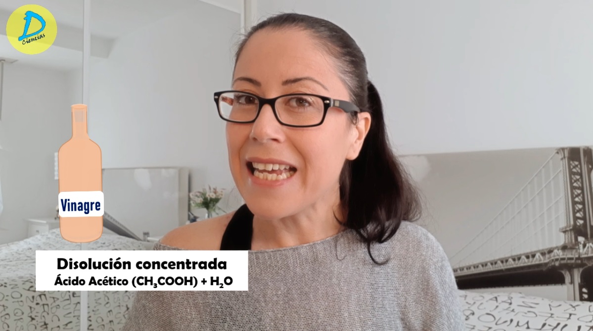 Cuando mezclas el vinagre y la lejía, esta última va a actuar como una base, extrayendo un protón del ácido acético del vinagre.