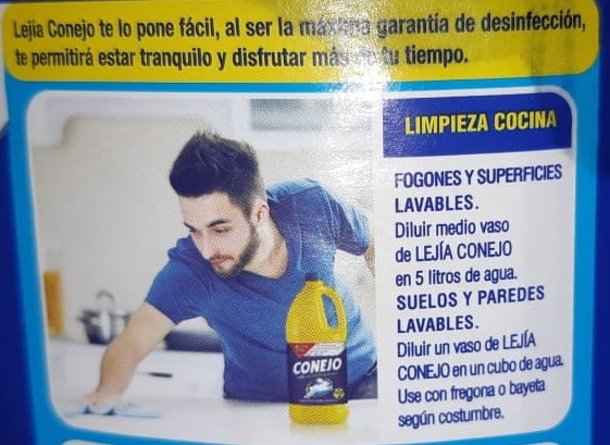 Fíjate que hasta la propia lejía conejo te recomienda que prepares disoluciones diluidas del 0,5% para desinfectar las superficies del hogar, 125 ml (medio vaso) de lejía en 5 litros de agua.